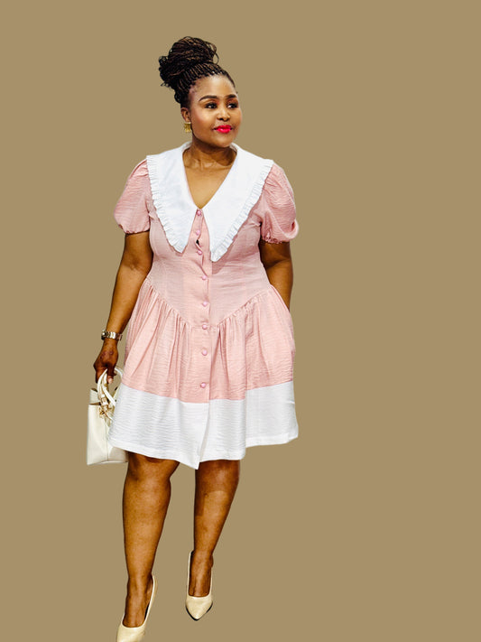 FR1084 PINK/WHITE BABYDOLL DRESS