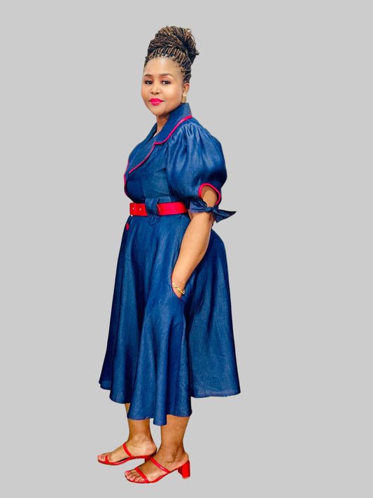 FR1083 NAVY/RED TENCEL DENIM DRESS
