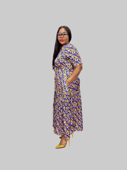 FR1073 BLUE/YELLOW GIPSY SHIRT DRESS