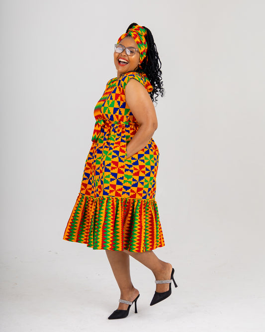 Sold outFRA67 ORANGE/GREEN ANKARA DRESS
