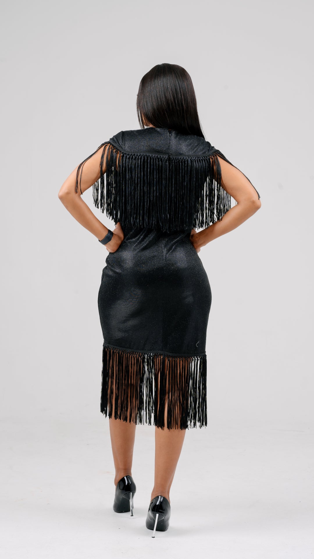 Indulge in pure luxury with our Fitted Tassle Dress. The perfect combination of elegance and sophistication, this dress is designed to enhance your figure while the tassle details add a touch of artistry. Elevate your style and make a statement in this exquisitely crafted piece.