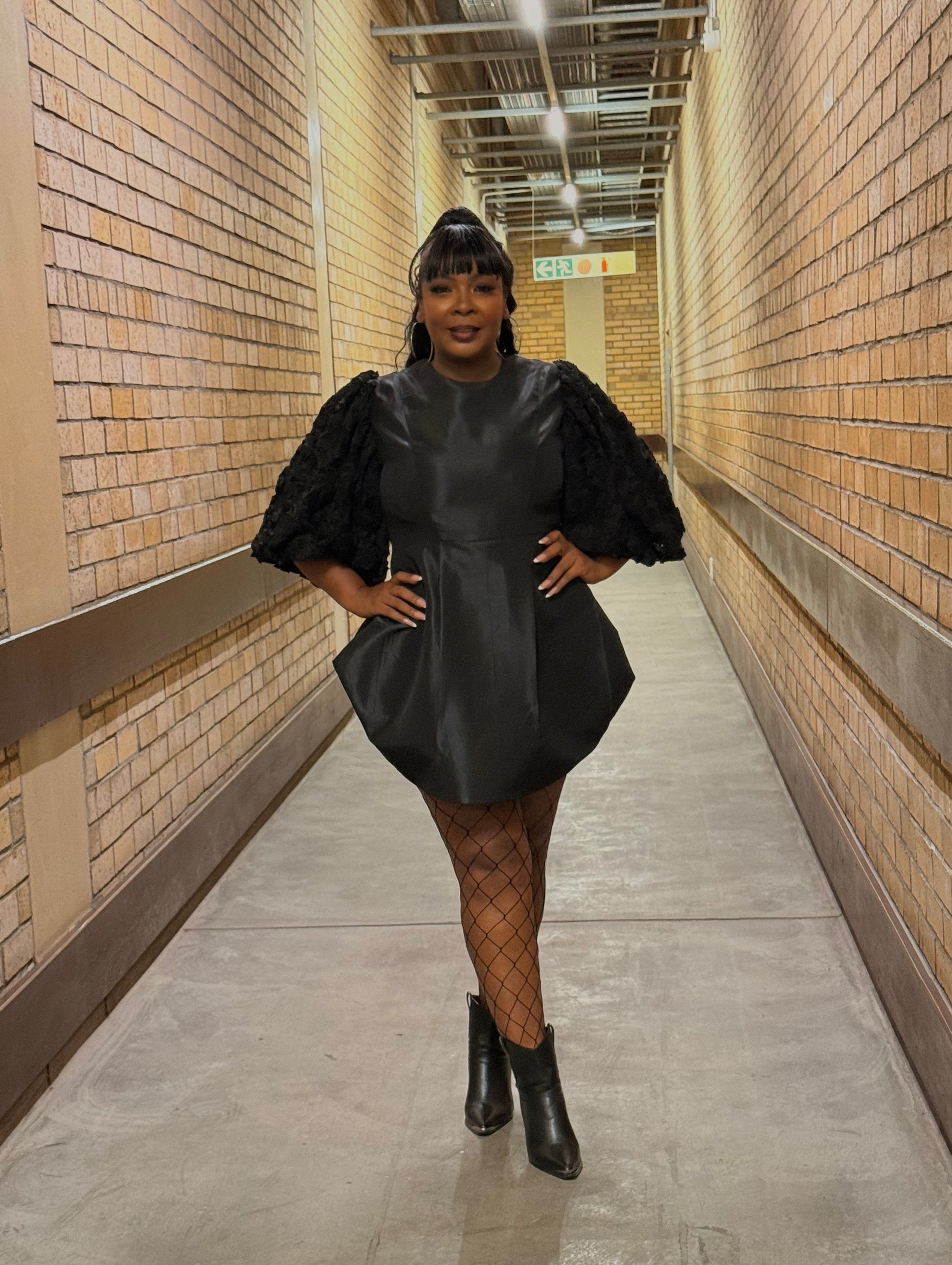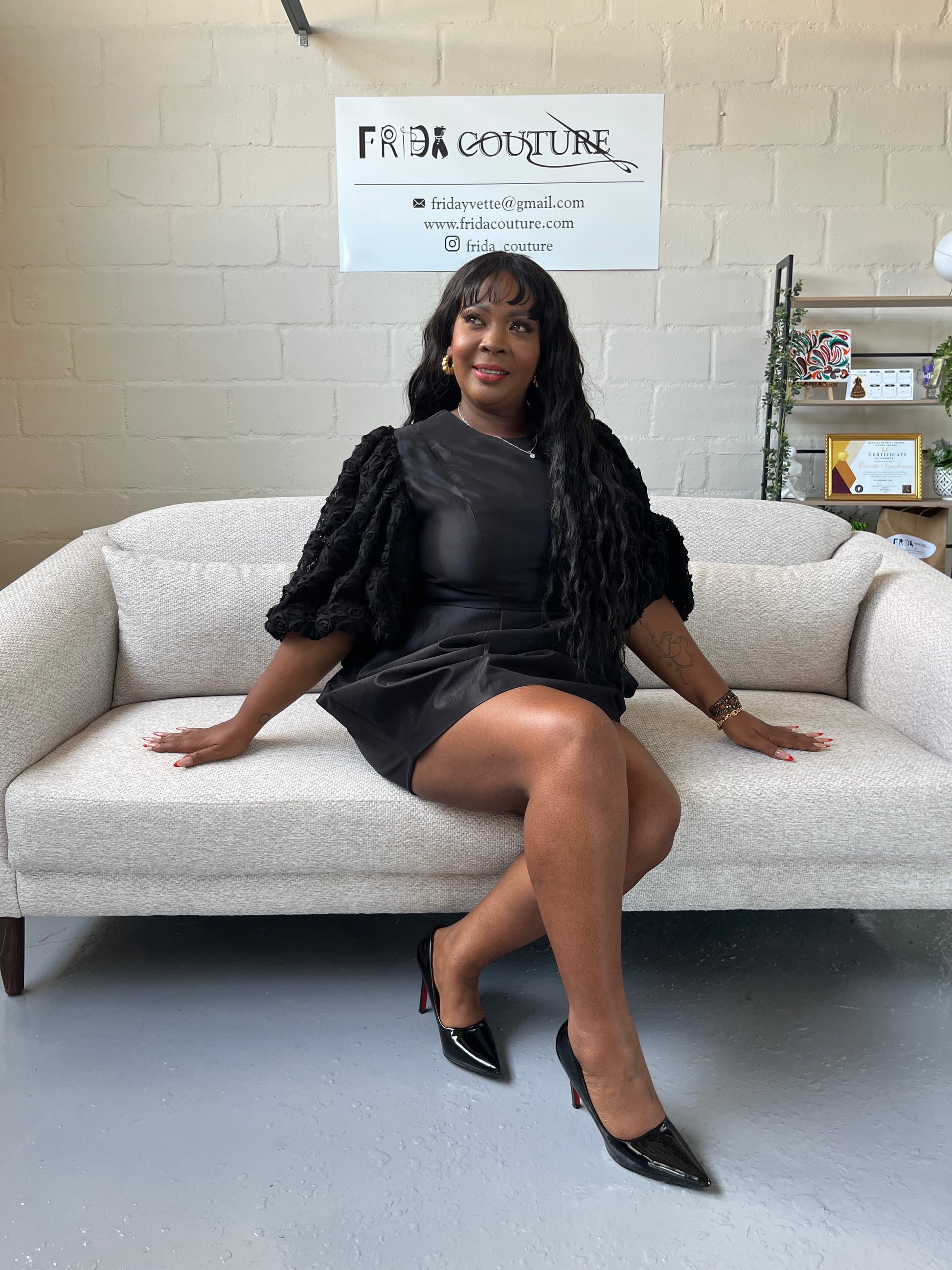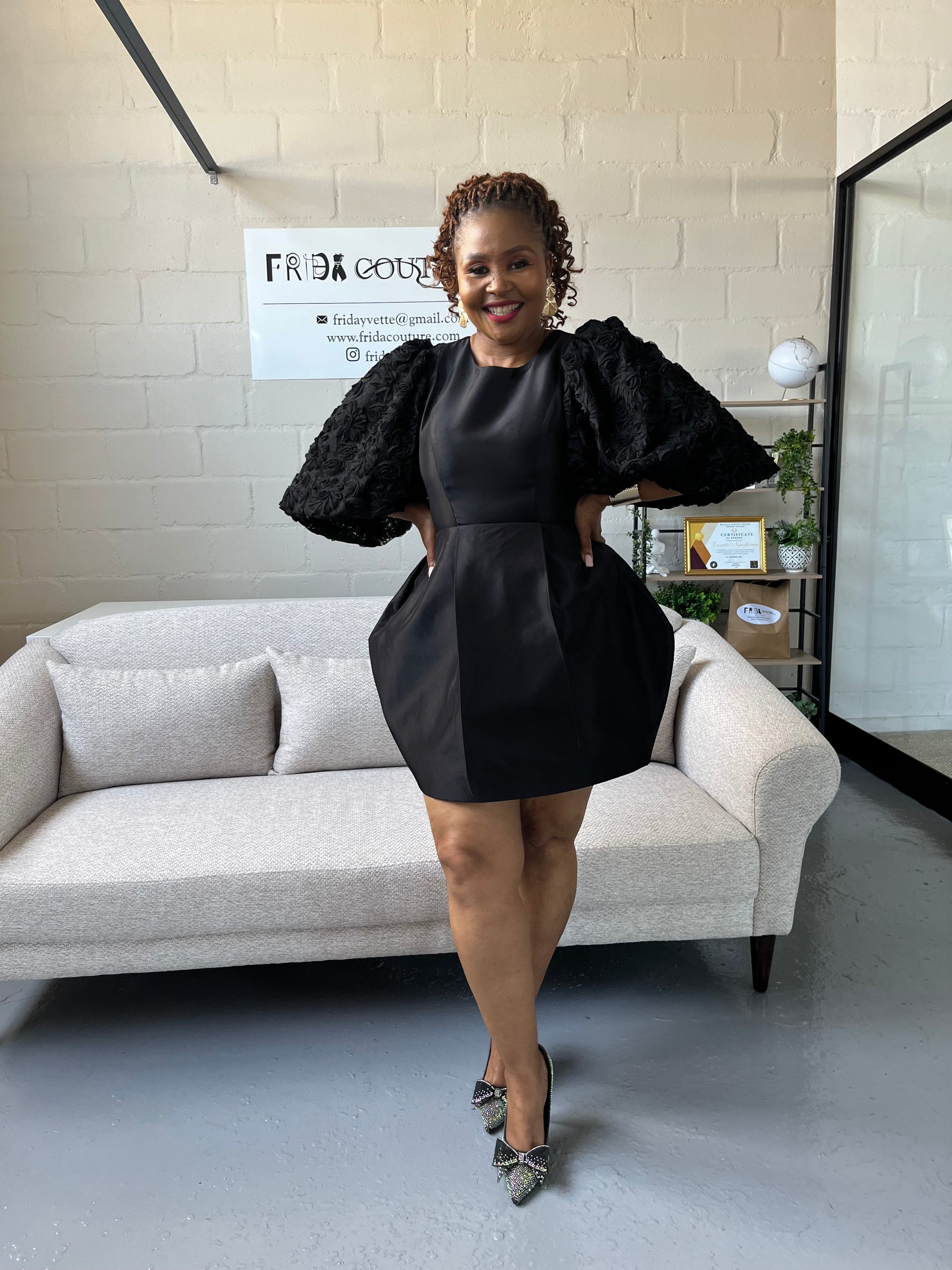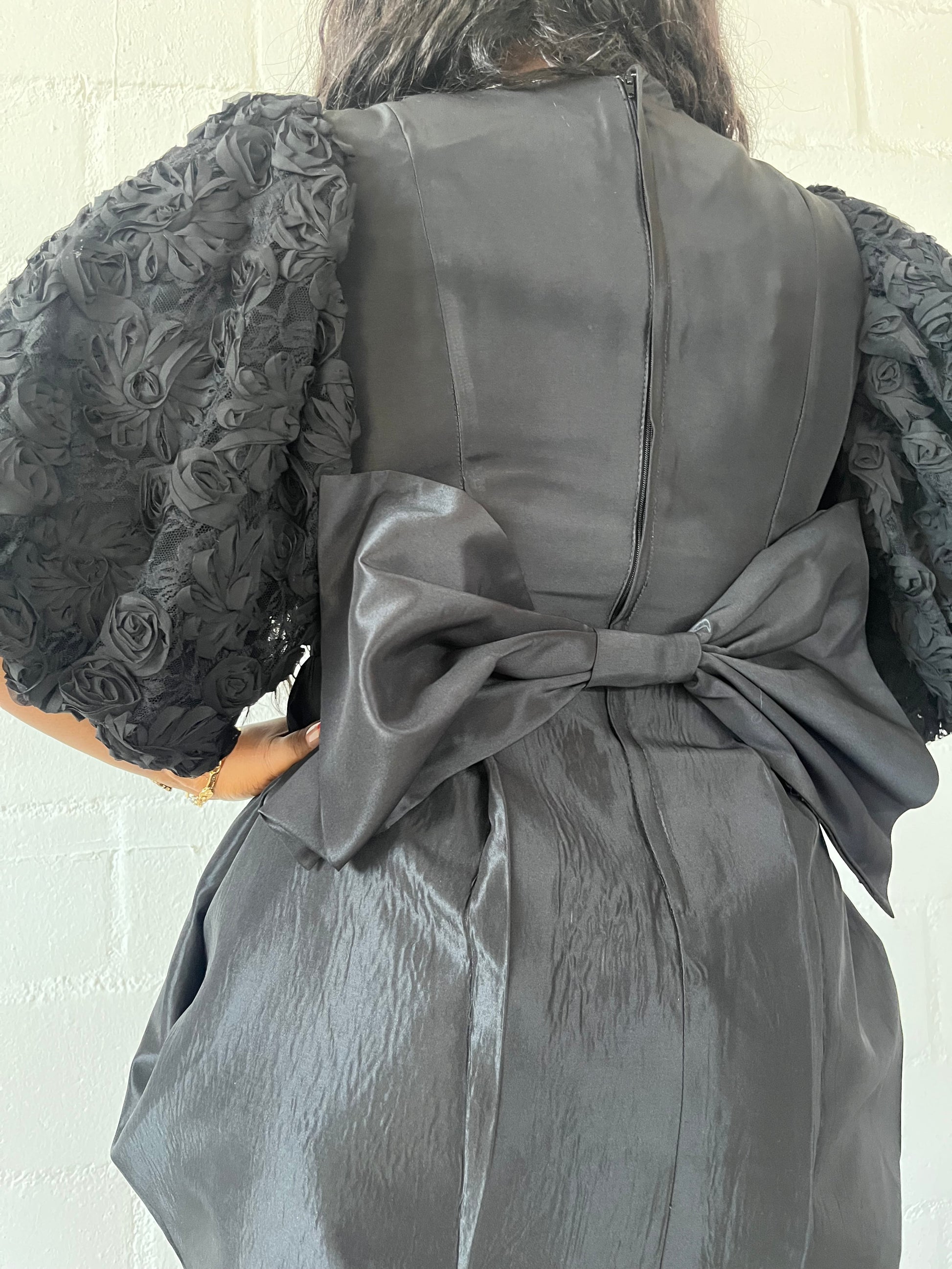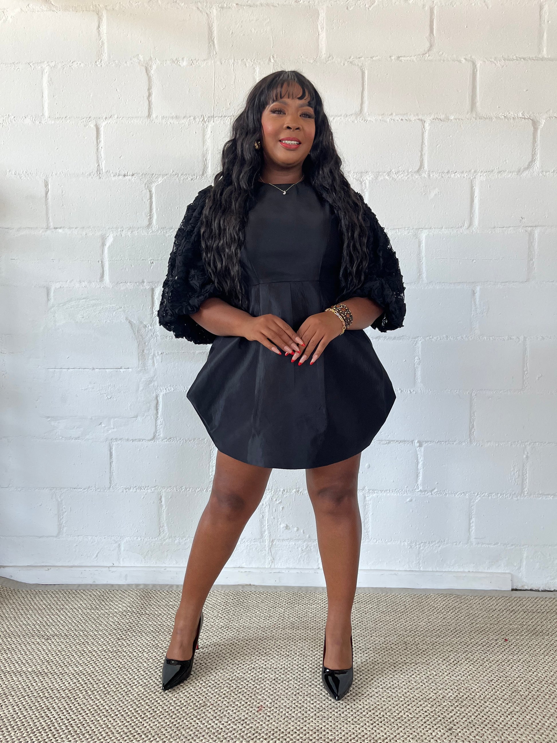 FR1109 BLACK MINI DRESS WITH PUFFY LACE SLEEVES