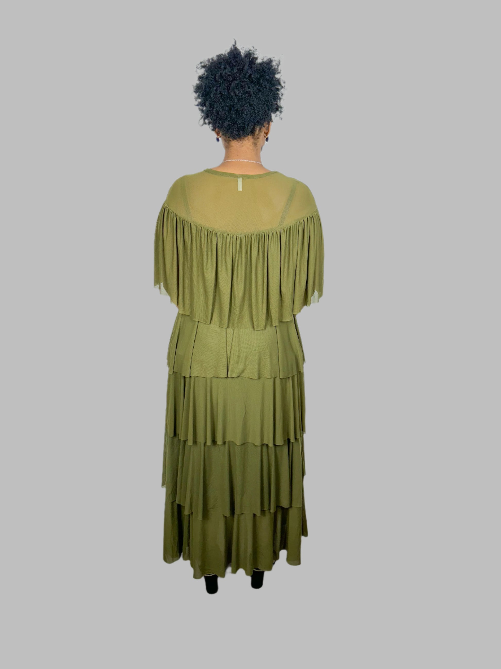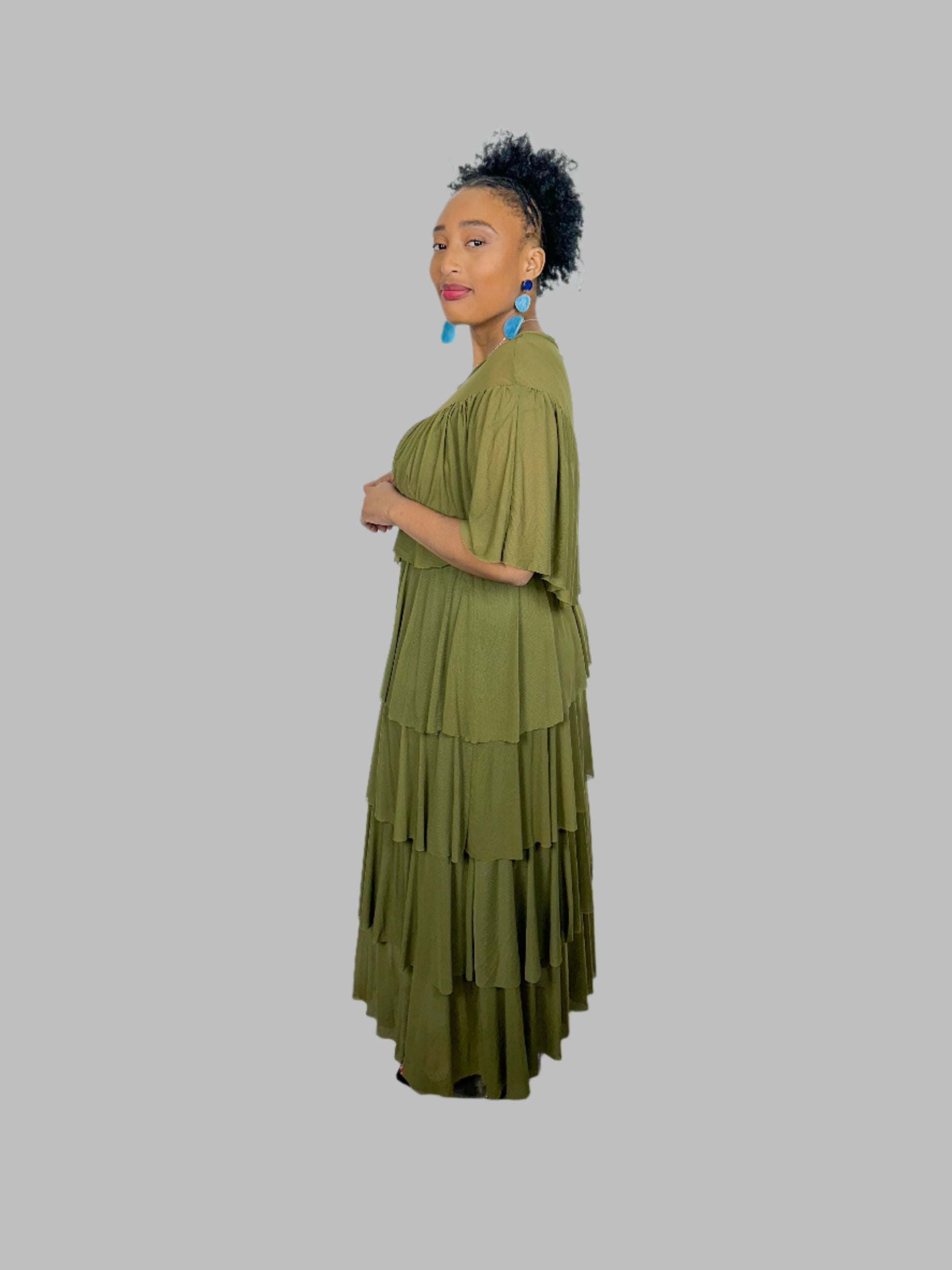Enhance your wardrobe with the luxurious OLIVE MAXI LAYERED DRESS. Designed with 3 panels, this dress offers a sophisticated and exclusive style. The layers add depth and texture, making it a must-have for any elegant occasion. Elevate your look with this one-of-a-kind dress.